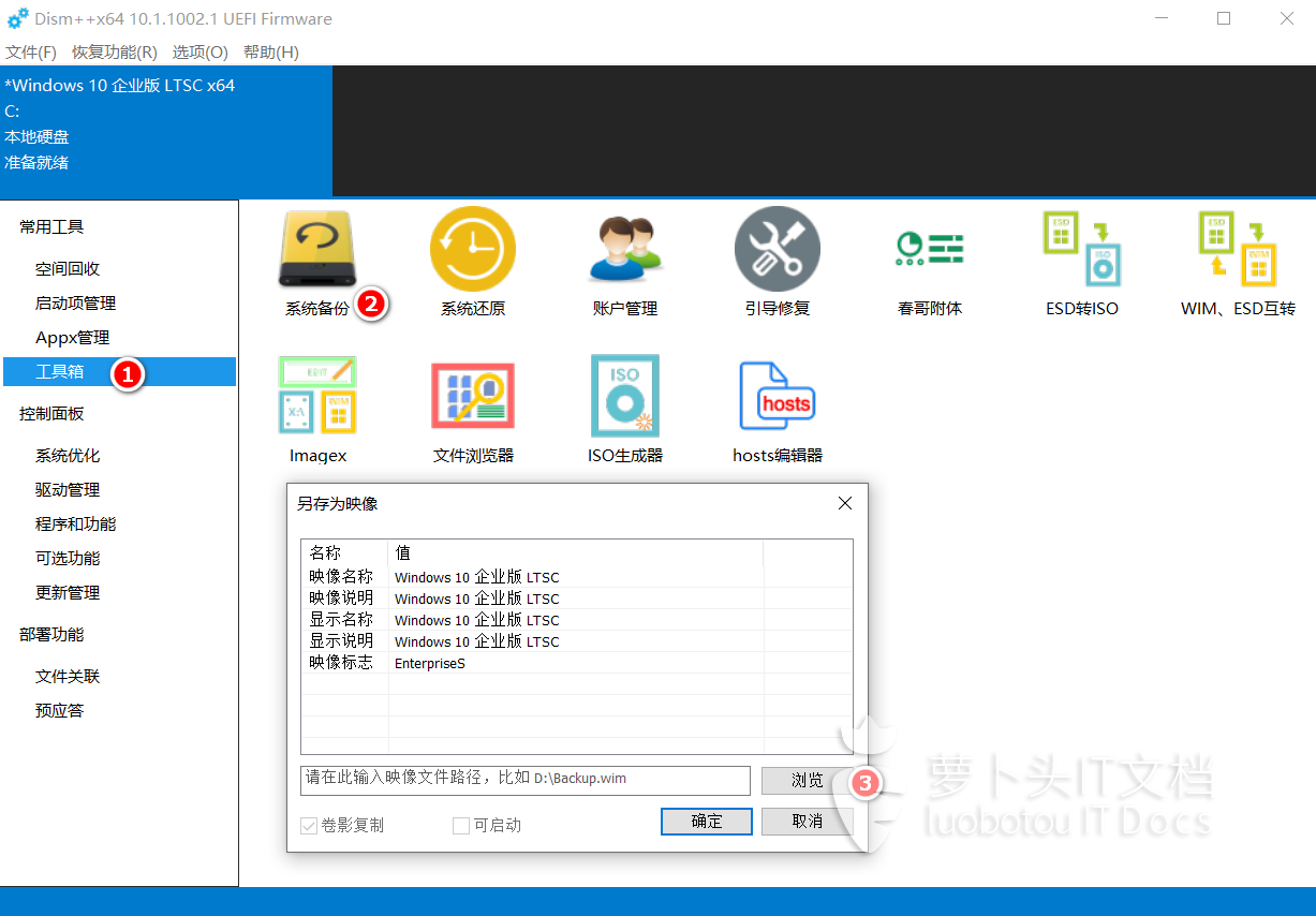 | Dism++ | 系统优化工具,可以用来修复引导、备份驱动、镜像转换等 |